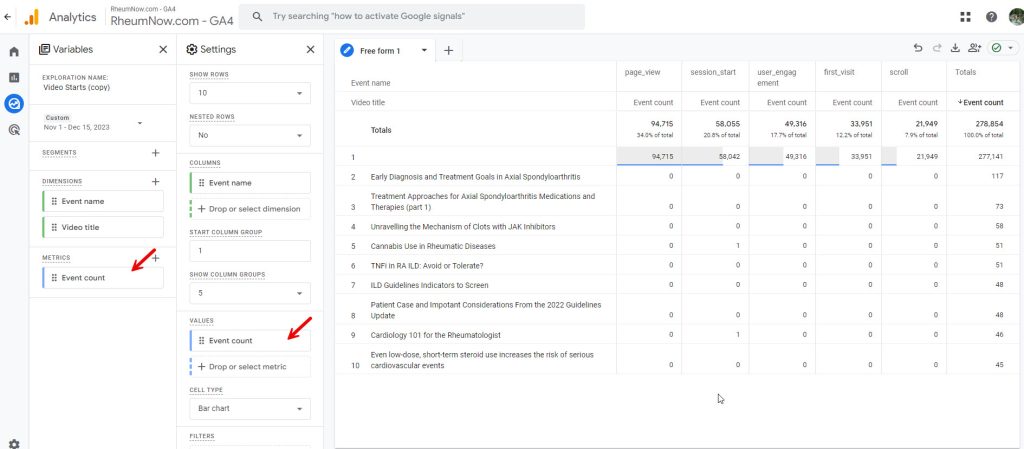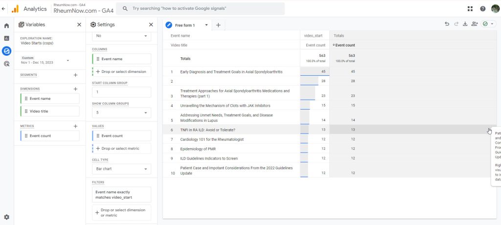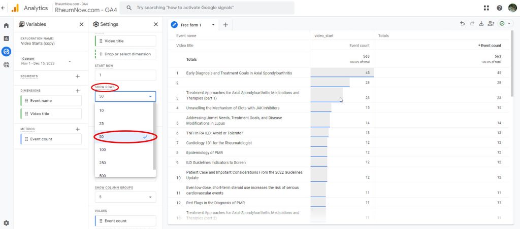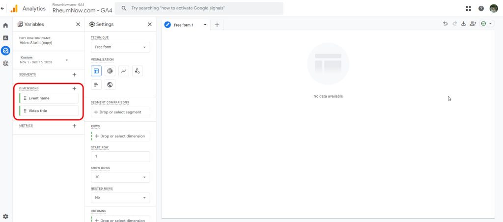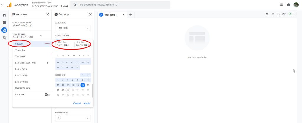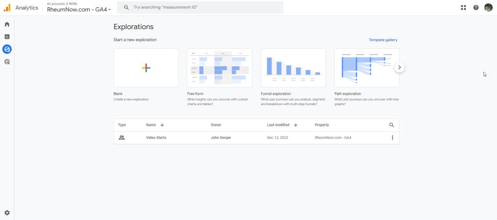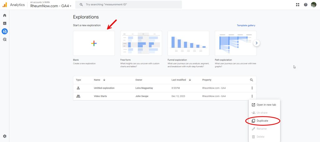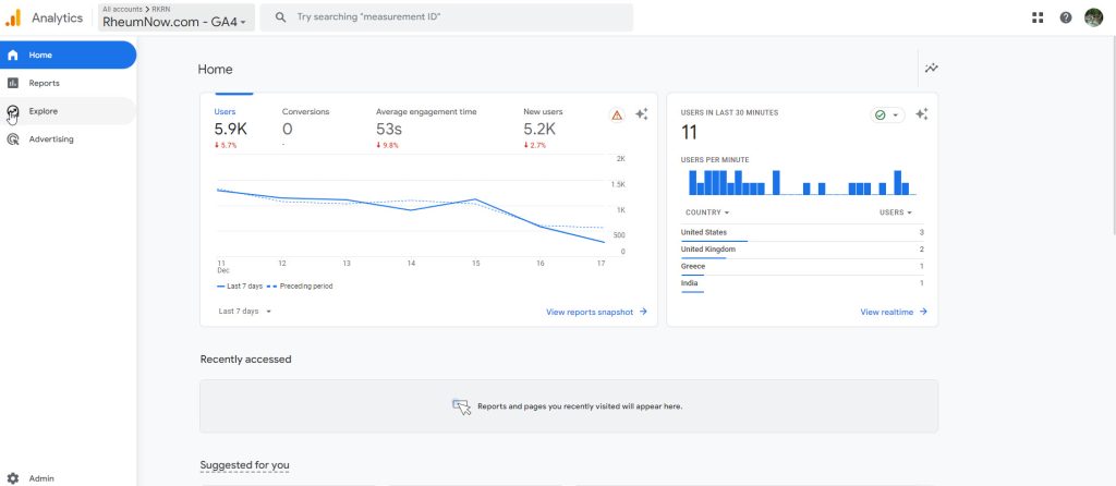 Go to Google Analytics > Go to Rheumnow.com – GA4 account > click Explore.
